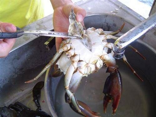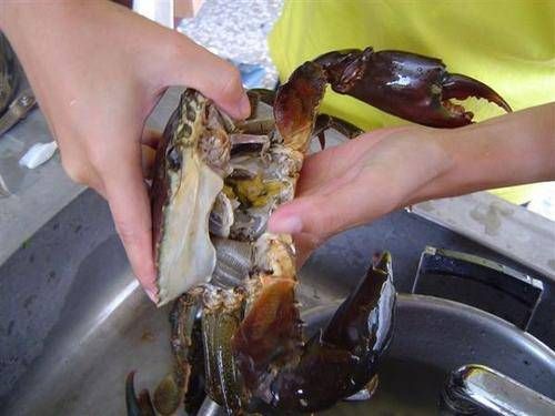 推薦理由: 1、先用筷子從螃蟹的嘴用力戳下去,稍微左右動(dòng)一下,螃蟹就會(huì)死了。死了以后就把綁蟹的繩子剪開(kāi)。 2、洗螃蟹,經(jīng)過(guò)多次試驗(yàn),牙刷最好用。腋下(腳和殼中間的部分)一定要洗干凈。 3、這個(gè)小蓋子要打開(kāi)剪掉。 4、然后剪這個(gè)地方。 5、剪完用力剝開(kāi)。 6、這個(gè)東西是螃蟹的腮,對(duì)螃蟹來(lái)說(shuō)很重要(是呼吸器官),但是對(duì)我們來(lái)說(shuō)不重要(不能吃),所以剪起來(lái)丟掉。...